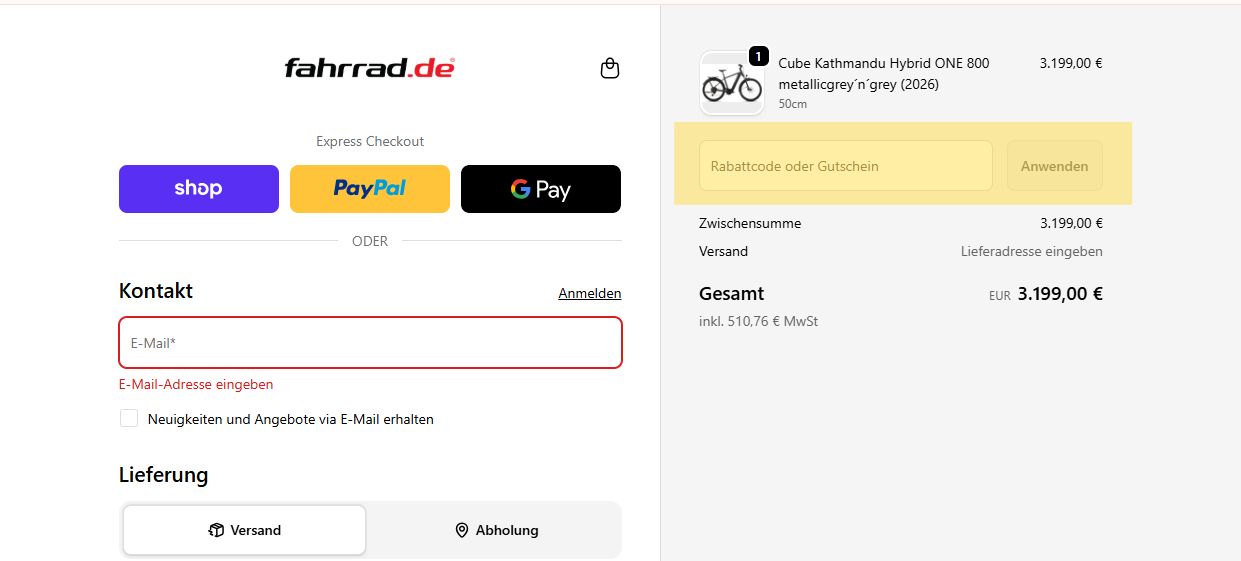 Du findest an der Kasse ein spezielles Feld für Aktionscodes. Hier kannst du deinen Aktionscode oder Geschenkgutscheincode eingeben und auf "Anwenden" klicken.